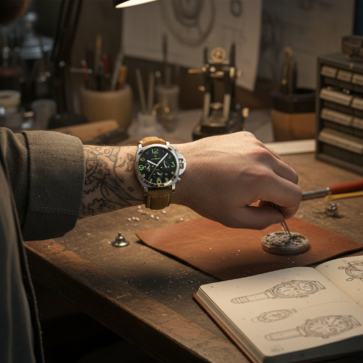 The Maverick embodies the spirit of American aviation heritage with modern sophistication. Inspired by legendary fighter pilots and military chronographs, this timepiece combines tactical precision with refined elegance.